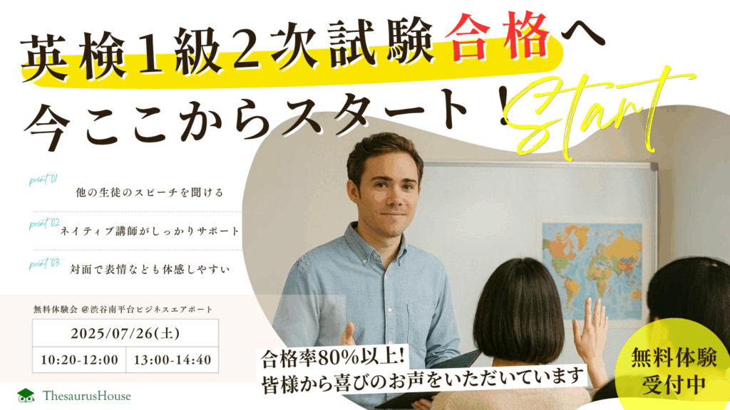 【無料体験&説明会】英検1級二次試験スピーチクラス 7/23(日)&7/30(日)